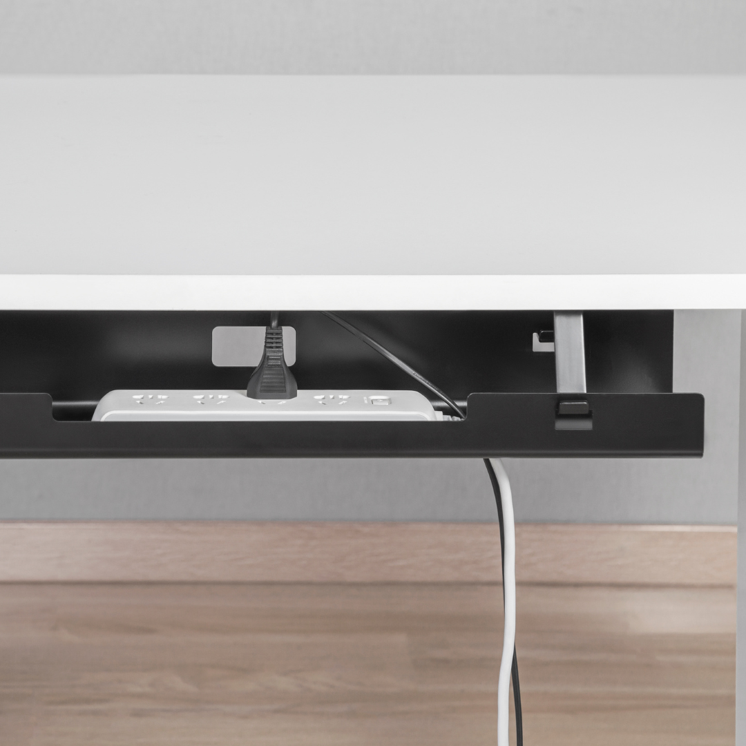 Tidy up your workspace and keep cords out of sight with the DESKIT Cable Management Tray. Designed to mount under your desk, this sleek steel tray helps you organise power boards, chargers, and cables—reducing clutter and preventing tangles.